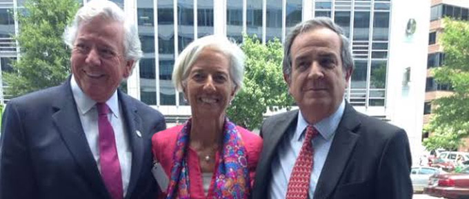 El presidente de la CPC, Andrés Santa Cruz, y el presidente de la Sofofa, Hermann Von Mühlenbrock, participaron de la gira que la Presidenta Michelle Bachelet realizó a Estados Unidos, entre los días 29 de junio y 1 de julio. Tanto el timonel de la CPC como el presidente de la SOFOFA, acompañaron a la Jefa de Estado en las actividades oficiales y privadas que sostuvo durante los dos días de su gira en la capital estadounidense. Los empresarios tuvieron un rol protagónico durante el viaje, debido a la cargada agenda temática, en la cual primaron las materias económicas, sobre todo en energía. En la foto, los dirigentes empresariales con la Directora del Fondo Monetario Internacional, Christine Lagarde.