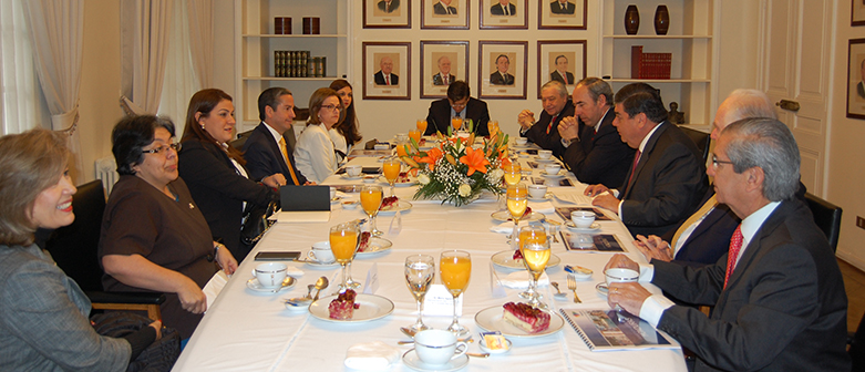 El presidente de la CPC y representantes de las ramas que la integran sostuvieron una fructífera reunión para intercambiar puntos de vista e información, con el fin de estrechar las relaciones comerciales y de negocios entre Chile y Honduras. La reunión estuvo encabezada por Alberto Salas y por la Canciller de la República de Honduras, embajadora María Dolores Agüero, acompañada de Luis Fernando Mata, Ministro Delegado Presidencial de Inversiones; María del Carmen Nasser, Vice Canciller de Cooperación y Promoción Internacional; María Antonia Navarro; Embajadora de Honduras en Chile, Aracely Benegas; Directora de Promoción Internacional de la Secretaría de Relaciones Exteriores; Iris Suyapa Amador Corrales, Consejera de la Embajada de Honduras; Mario Agüero, representante de la Asociación Hondureña de Empresas Bancarias y representante del Fondo de Garantía Recíproca en Honduras; y Carlos Ramos, Presidente Interairports y Asesor junta Directiva Consejo Hondureño de la Empresa Privada.