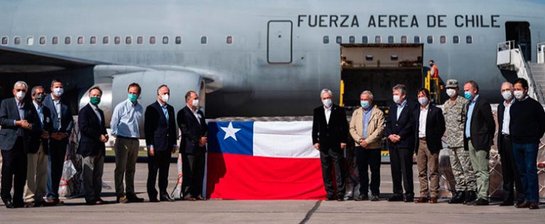 El presidente de la CPC y representantes de la CNC, SNA, Sonami, Sofofa, CChC, Abif y Consejo Minero, asistieron este mediodía al Grupo 10 de la FACH, para recibir junto al Presidente Sebastián Piñera, el primer embarque de los ventiladores mecánicos donados por el Fondo Privado de Emergencia para la Salud, bajo el alero de la causa SiEmpre-Solidaridad e Innovación Empresarial.