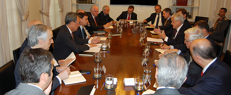 Luego de las palabras que dirigió el presidente de la CPC a los participantes, se inició el diálogo con el Presidente Sebastián Piñera, quien llegó a las 8:30, según lo previsto. A la salida de esta primera parte de la reunión, que se extendió por más de una hora, el Mandatario destacó el desempeño que ha tenido la actividad este año -con un crecimiento proyectado de 4%- y sobre el mercado laboral señaló que “la economía ha vuelto a crear empleos, ha mejorado la calidad de los empleos y los salarios están creciendo”. Luego añadió: «Aspiramos a llegar a los niveles que tienen países como Australia y esa es la gran misión, no solamente de nuestro Gobierno, sino que de nuestra generación, y para eso nos queda mucho camino por recorrer. Pero no nos vamos a dormir en los laureles y estamos preocupados en cómo proyectar a este país en marcha, para que se transforme, antes que termine la próxima década, en un país desarrollado y sin pobreza». Y concluyó que «para eso se requiere de la colaboración entre el sector público y la sociedad civil y el mundo empresarial, y dentro del sector público, la colaboración entre el Gobierno y oposición».